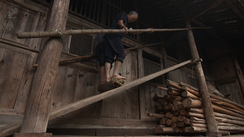 古老的茶技在片中一一呈现,而这当中,要数黑茶的制法最为独特,最具观赏性。“如今,只有雅安长沙村的老师傅,还能用最传统的方式揉捻茶叶。木板斜置放高,茶农要亲自赤脚上阵,由上至下反复将麻袋里的茶叶揉捻,这项技艺就叫斜板溜茶。遗憾的是,溜茶耗时耗力,如今已被现代工艺取代。”王冲霄说。